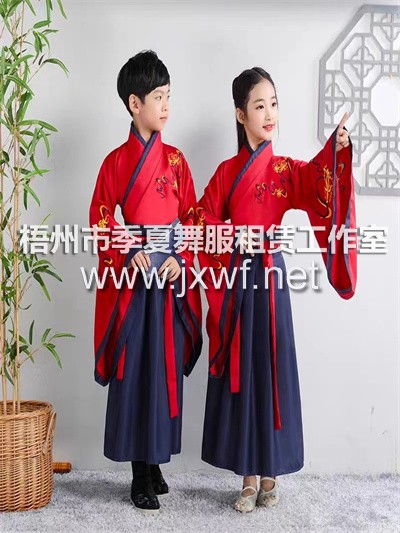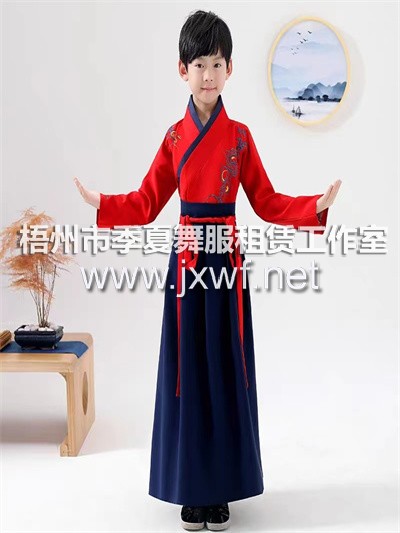 RT028兒童古裝漢服表演服國學(xué)服裝男女書童開筆禮秋學(xué)生三字經(jīng)演出服RT028